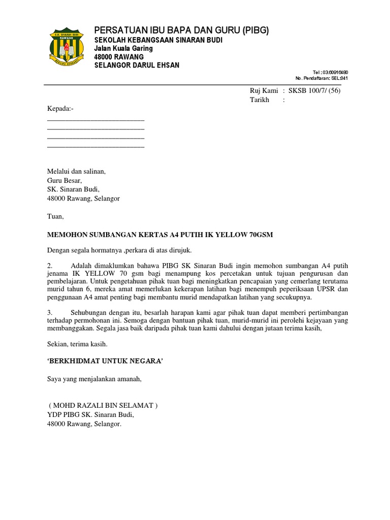 Skbbsp1 Surat Memohon Sumbangan Kertas A4 Facebook